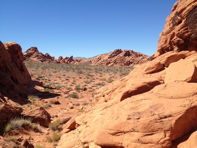 Smushed between gray and brown mountains in the Pinto Valley Wilderness is Redstone. The abundance of gigantic red rocks is off Northshore Road at mile marker 27 in the Overton Arm, and it doesn’t disappoint.