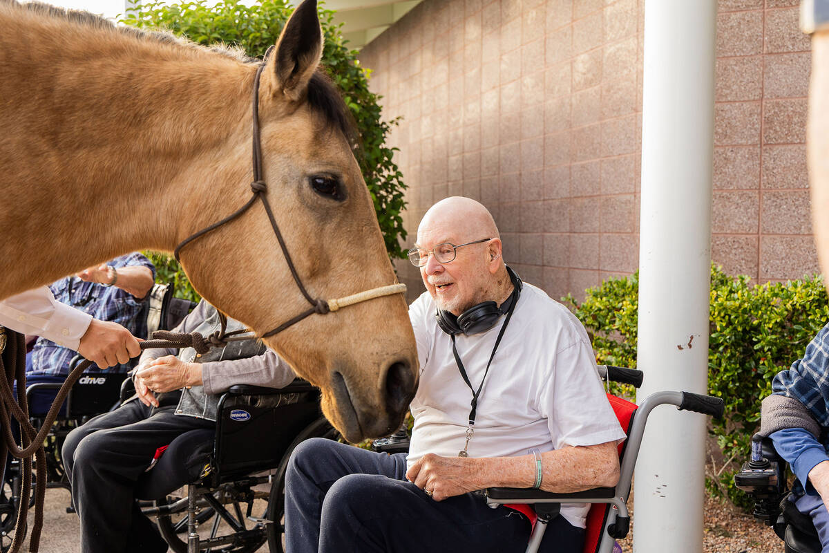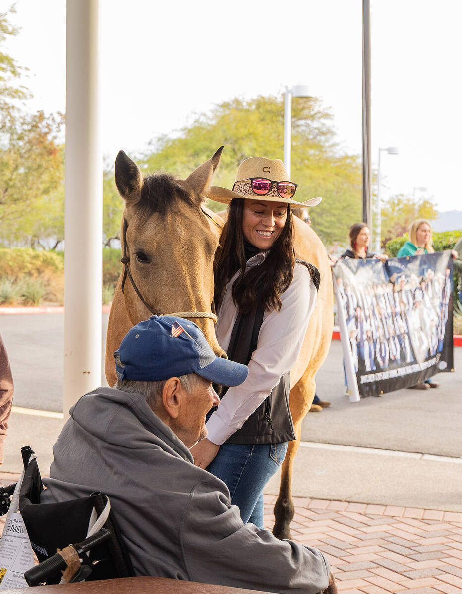 The Boulder City Rodeo Club showcased its dedication to the community on Sunday, Nov. 30 with a visit to the Southern Nevada State Veterans Home. The team arrived with several of their horses and brought Christmas gift donations that the home had specifically requested for their residents. These included puzzles, headphones, and chargers, which the home will give as Christmas gifts. The kids spent quality time with the residents, talking with them, getting to know their stories, and connecting over shared interests. Many of the veterans had backgrounds in horses or equestrian life. The team sang Christmas carols and the “Star-Spangled Banner”, filling hearts with warmth and holiday spirit. Community service has always been at the heart of this club. Throughout the year, the team volunteers at local events such as Art in the Park, Wurstfest, Spring Jamboree, and many others, along with participating in community cleanups.