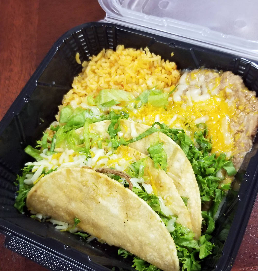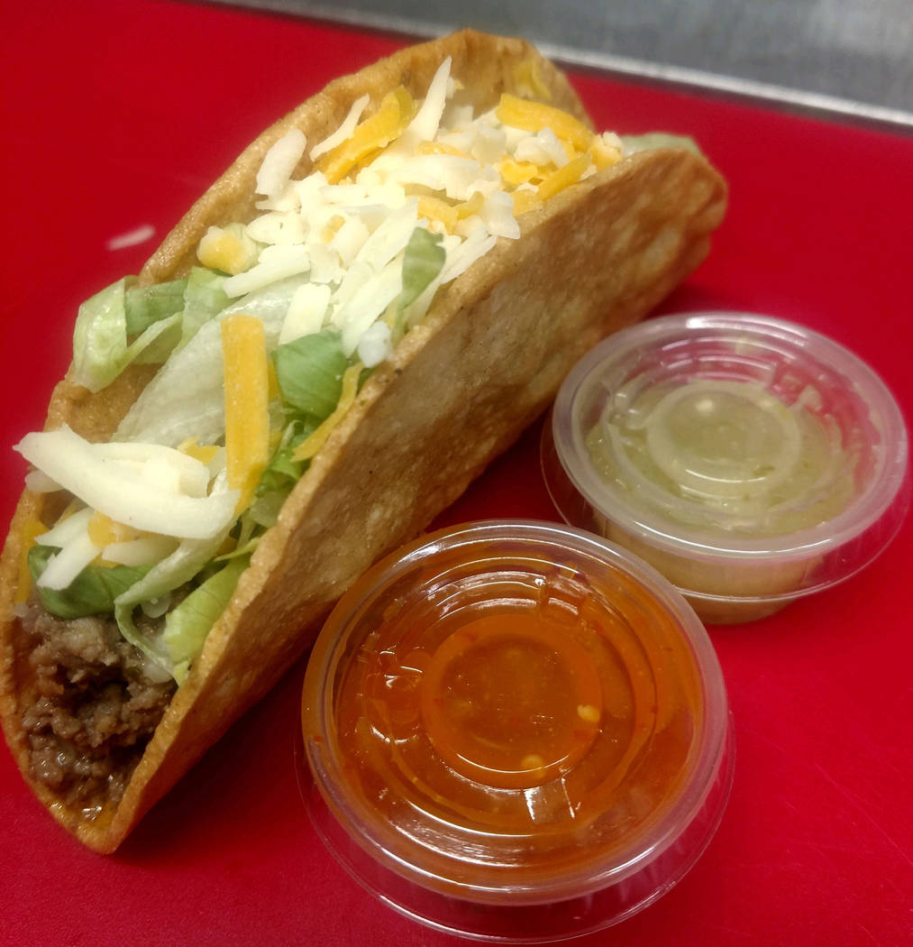 The tacos come in twos and are served with lettuce and shredded cheese. They are available as a combo meal with rice and refried beans topped with melted cheese for $12.50. Tomato salsa is available on the side. Ford said tacos can be bought a la carte.