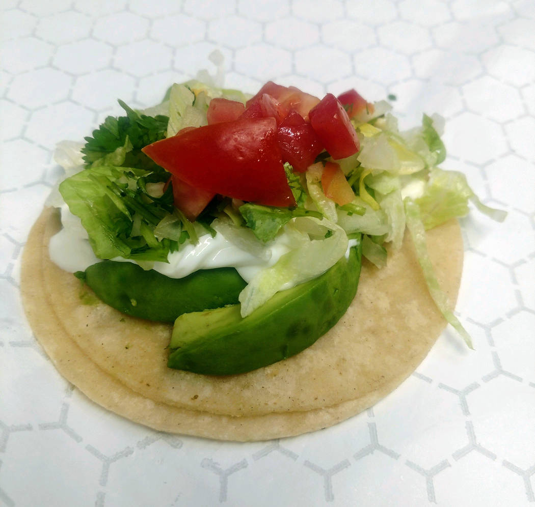 The fried avocado taco is a street taco with cilantro lime aioli, shredded lettuce, red onion, Tapatío ranch dressing and cilantro served on top of a piece of fried and breaded avocado. The pork belly street taco is an Asian fusion creation with sliced braised pork belly, sweet Asian sauce and green onions.