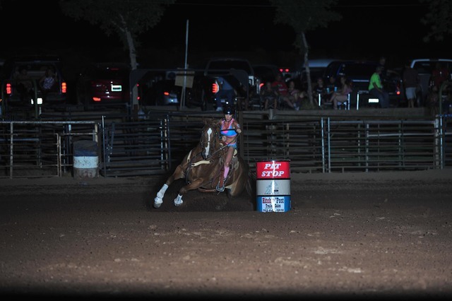 Stop the Clock Barrel Racing put together the event and paid out more than $5,000, distributed among the fastest three riders in each of the five divisions. The winner of each group also received a trophy buckle, including Patty Harrison who put up the evenings fastest time at 14.879 seconds.