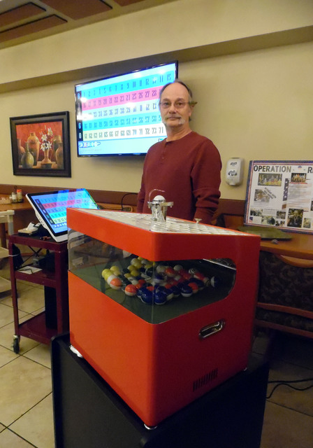 Tim Murray, veterans chairman for the Nevada State Elks Association, stands ready to call bingo for residents at the Nevada State Veterans Home using the new bingo system donated by the state association with help from Boulder City Elks, Lodge 1682.