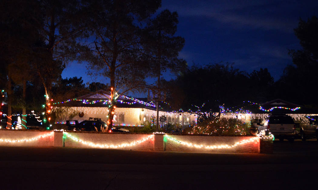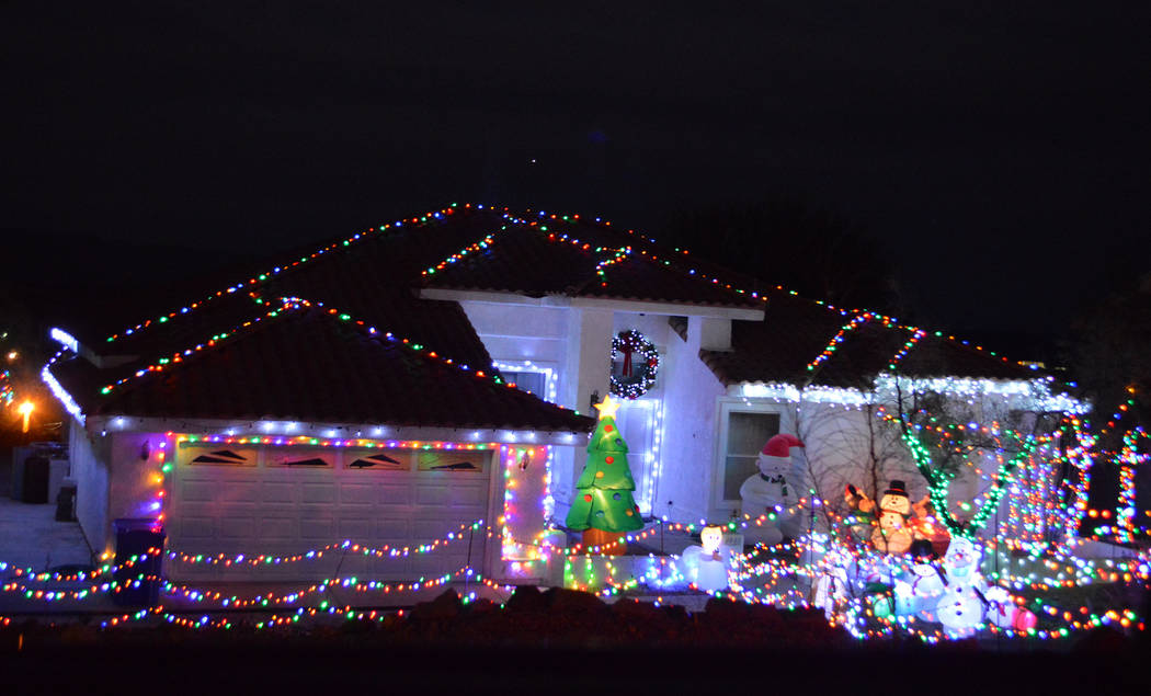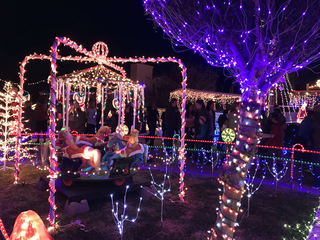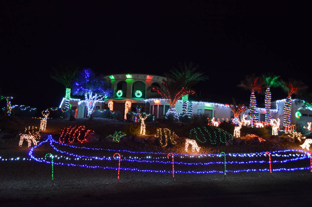 This house is synonymous with Christmas lights in Boulder City. Homeowners Dale Ryan and Dyanah Musgrave spend months setting up their display that includes an animated Ferris wheel, ski lift and roller coaster along with thousands of other dancing, twinkling lights.