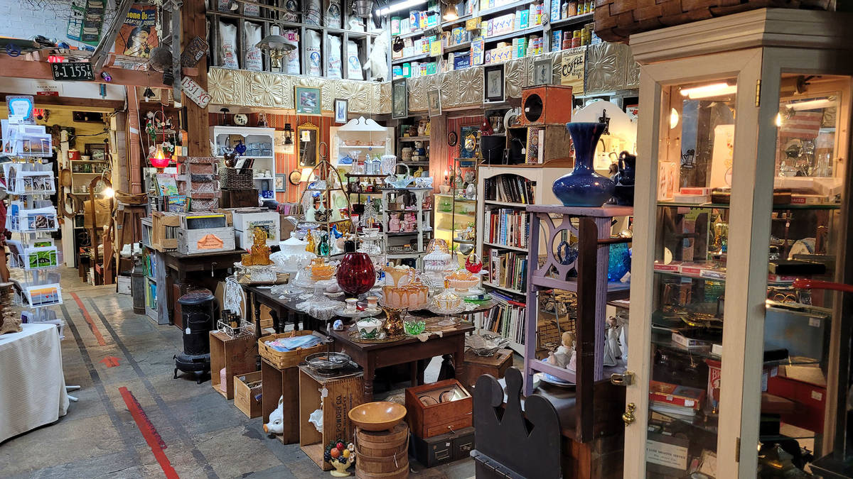 This store features two floors of wall-to-wall antiques, rare gifts and other items for sale from different vendors. It also has books, clothes, vinyl records, furniture, cookware, glassware and handmade items available for purchase.