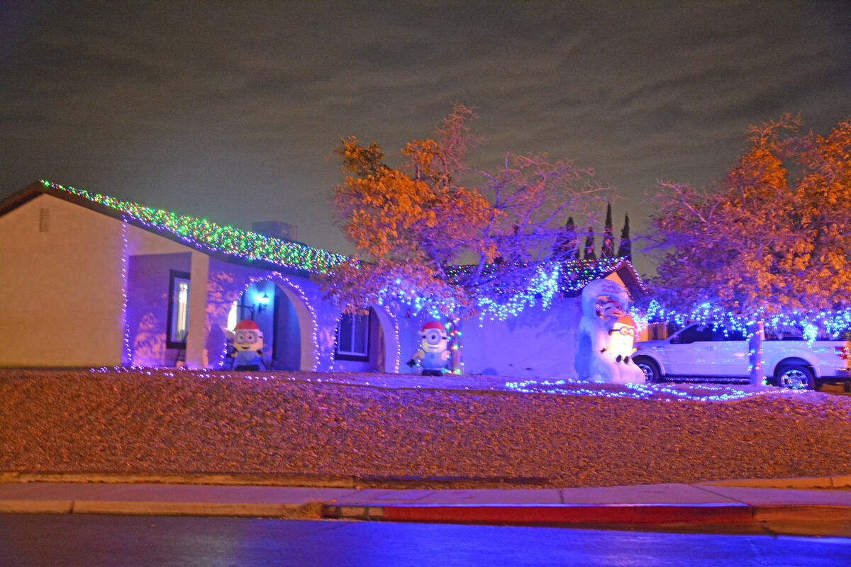 This home near the corner of Sandra Drive and Nadine Way made its holiday decorations all about blue lights and Minions.