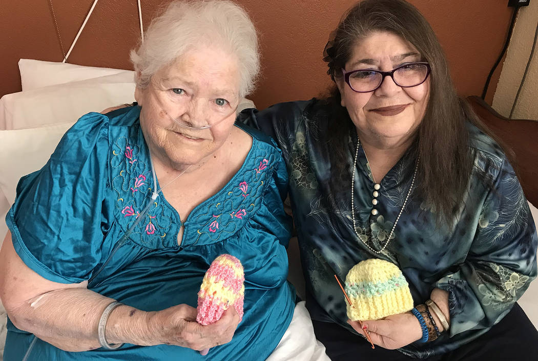 A small group of residents at Mountain View Care Center is warming heads of newborns and the hearts of their parents with special gifts of crocheted beanies.