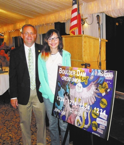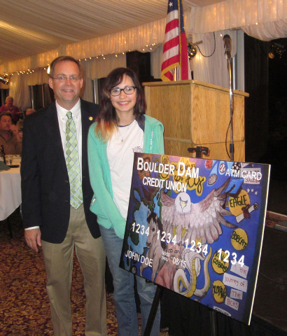 Carranza, who received a $300 Visa gift card, was recognized during the credit union’s 74th annual meeting in late February. She submitted an original piece of art that contained the four mascots — an eagle, bobcat, cobra and mustang — at Boulder City schools.