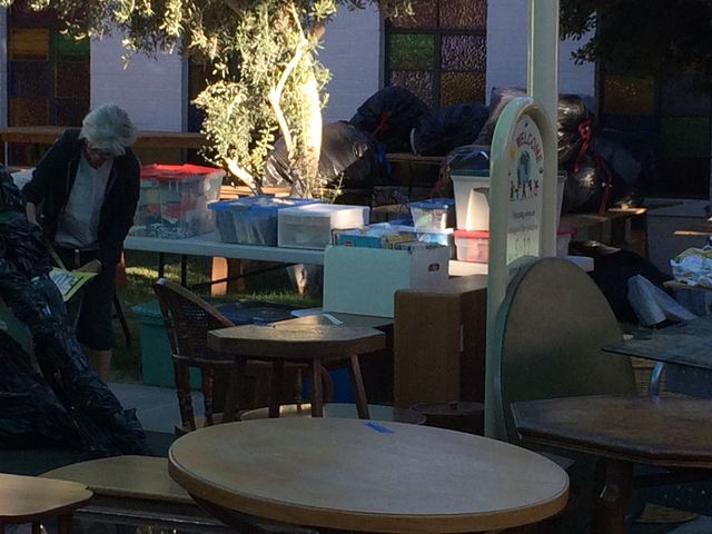 Additionally, they receive help from local Boy Scouts and clubs at Boulder City High School that help unload the boxes brought to the church from the storage area, and fathers of schoolchildren who move desks and other items from classrooms to make way for the sale.