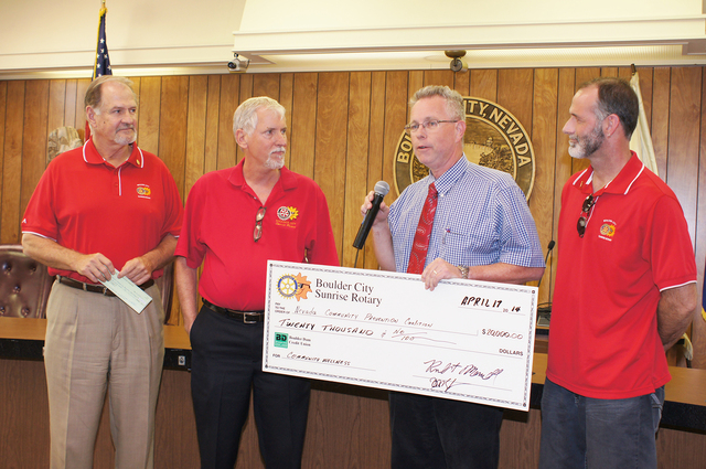 The Nevada Community Prevention Coalition received a $20,000 donation from the Boulder City Sunrise Rotary Club on April 17 at City Hall with the hopes of promoting education of prescription drug abuse in rural Clark County.