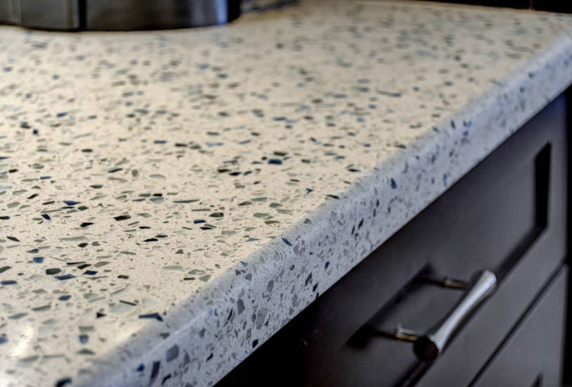 Recycled materials such as paper, plastic, stone and glass are being used to create innovative countertop surfaces. They come in a wide variety of looks and colors. Each offers environmentally friendly and healthy properties, but no countertop material has zero impact on the planet.