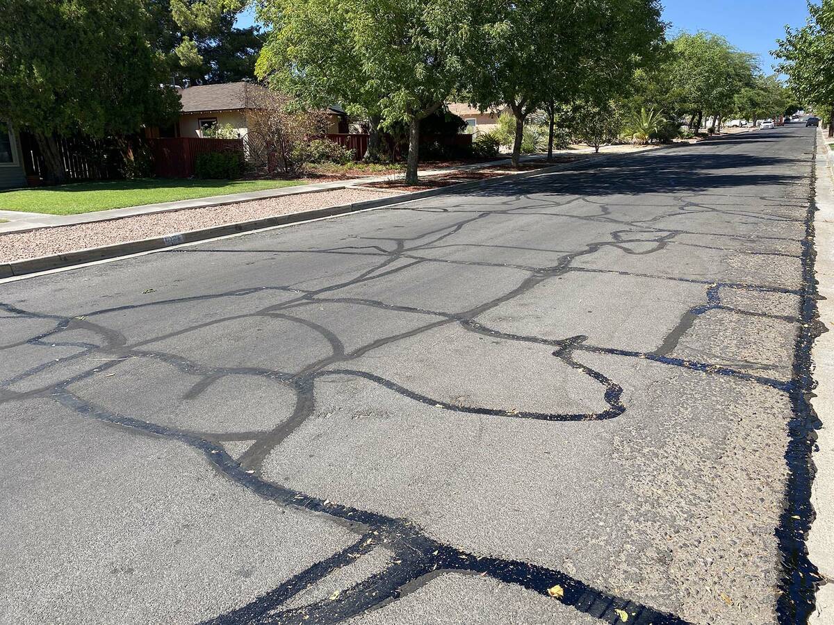 Repairing cracks is something we need to do around our homes as well. Keegan Littrell, Public Works director for Boulder City, sums it up perfectly: “Much like roads, you should protect your own property from cracks. Moisture from rain and ground seepage can lead to weed growth, ruin foundations, masonry, sidewalks and driveways.