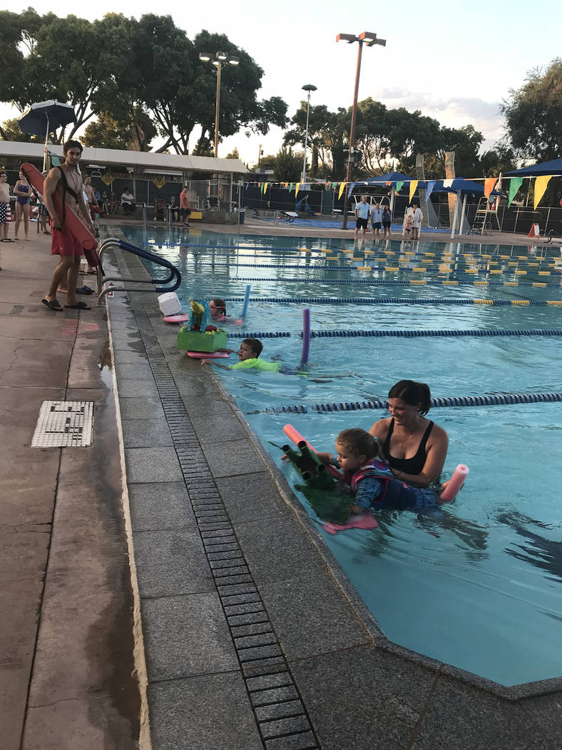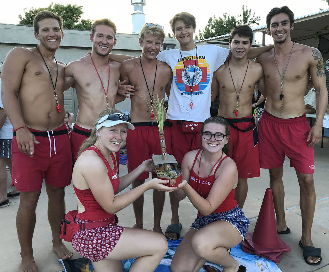 For the first time in the history of the cardboard boat races at Boulder City Pool, its lifeguards had an entry. Showing off their creation are, standing, from left, Ben Missel, Dillon Viera, Michael Trassdahl, Joshua Larson, Robbie Leavitt, Hunter Dale, and kneeling, Alea Lehr and Jessica Smith.