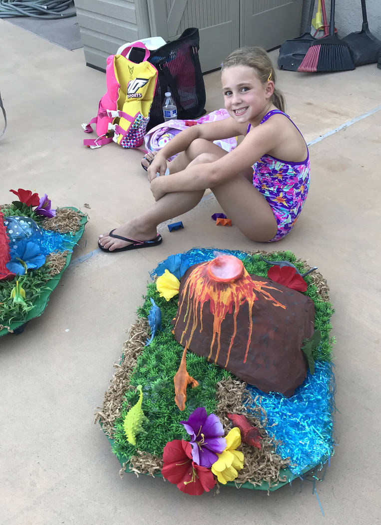 Seven-year-old Taylor Reeves’ Smoky the Great volcano entry, which spewed smoke thanks to the use of dry ice, won first place for the best movie depiction in the 18th annual cardboard boat races at the Boulder City Pool on July 25.