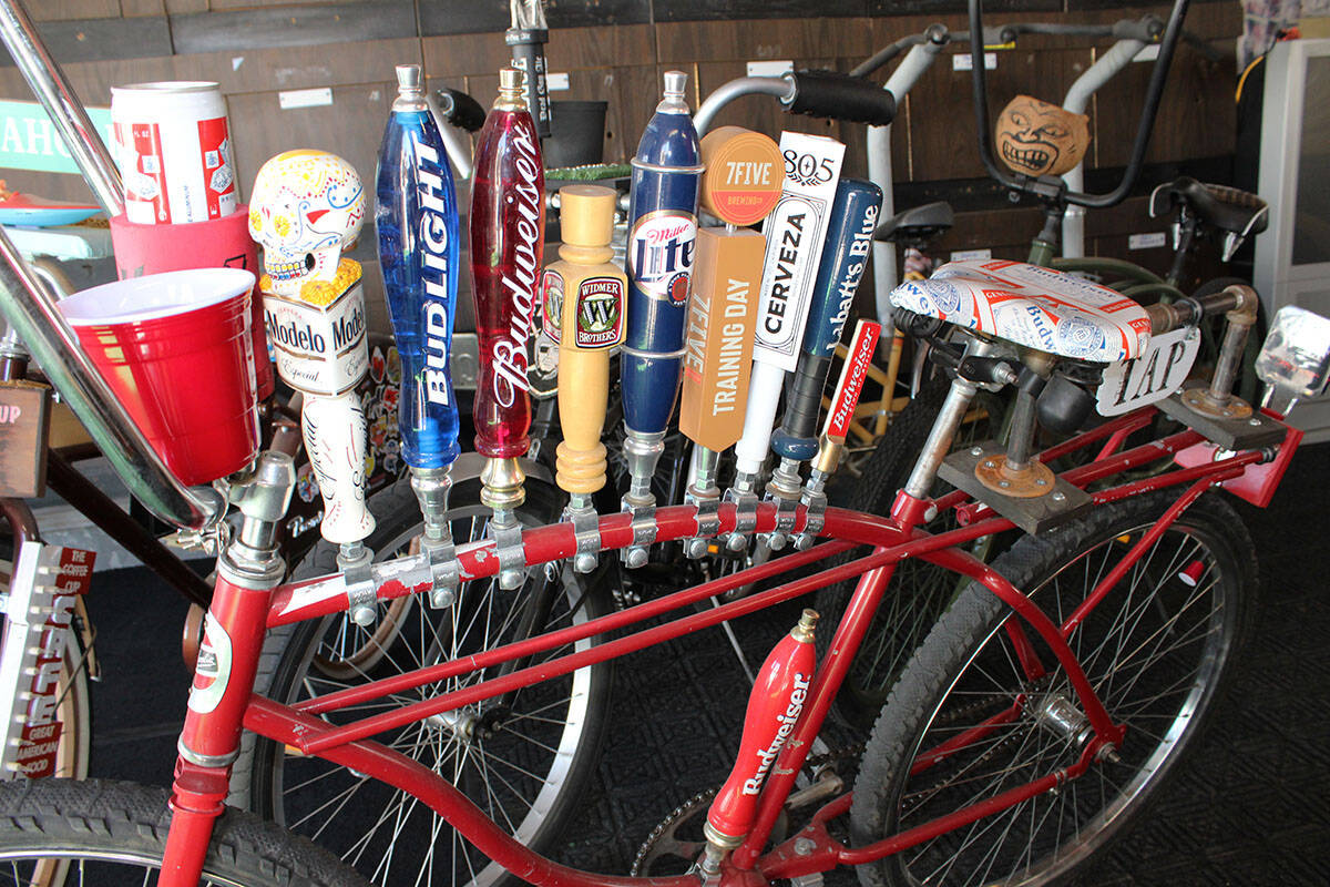 “Honestly, it started when I was working with my brother, 10 or 11 years ago,” he said. “But it began with cup holders. I was going to make these extravagant cup holders. Then it snowballed into getting bicycles and naming each (with a theme) after different bars in town. I started the BC Bar Hoppers.