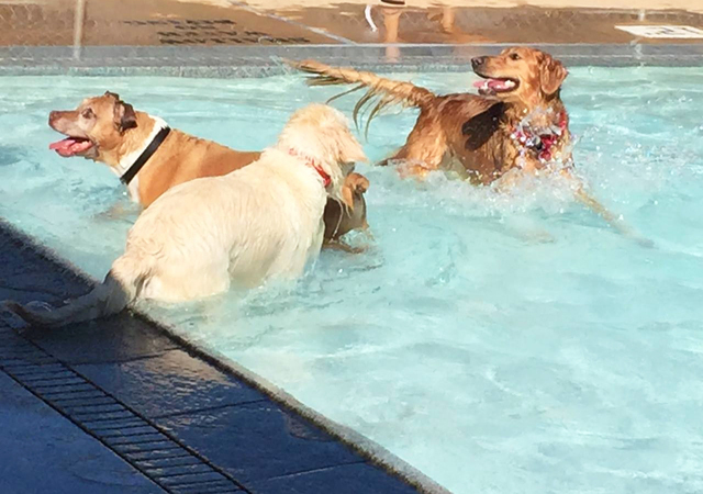 The pool party will be divided up in two sessions, the first from 9-10:25 a.m. and a second from 10:35 a.m. to noon. Owners must register their dogs for one of the two sessions to bring their pets in.