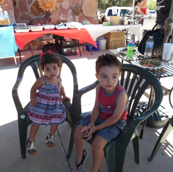 Lily Orduna, 1, and Nolan Orduna, 3, great-grandchildren of Western and Mexican Center founders Ramino and Petra Gomez, enjoy lunch outside the store during Saturday’s 50th anniversary celebration. Four generations of family and friends attended the event. ANDY SAYLOR/BOULDER CITY REVIEW