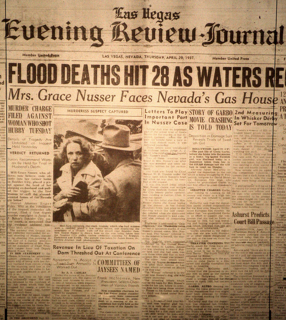 In 1937, Boulder City resident Grace Nusser received a call from lawyers for her husband, George, telling her he had filed for divorce without informing her. She also found a love letter from the woman, who was reportedly a beauty parlor owner or waitress, he was having an affair with.