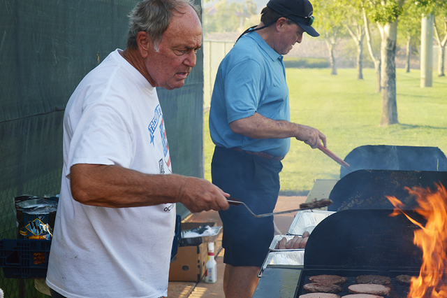 Gaal does not cook alone and for the past three years he has had his friends help him make sure that everyone attending National Night Out is well fed. Former Boulder City Chamber of Commerce President Julie Boyster and her husband, Zane, have spent the past three years sweating over the grill with Gaal.