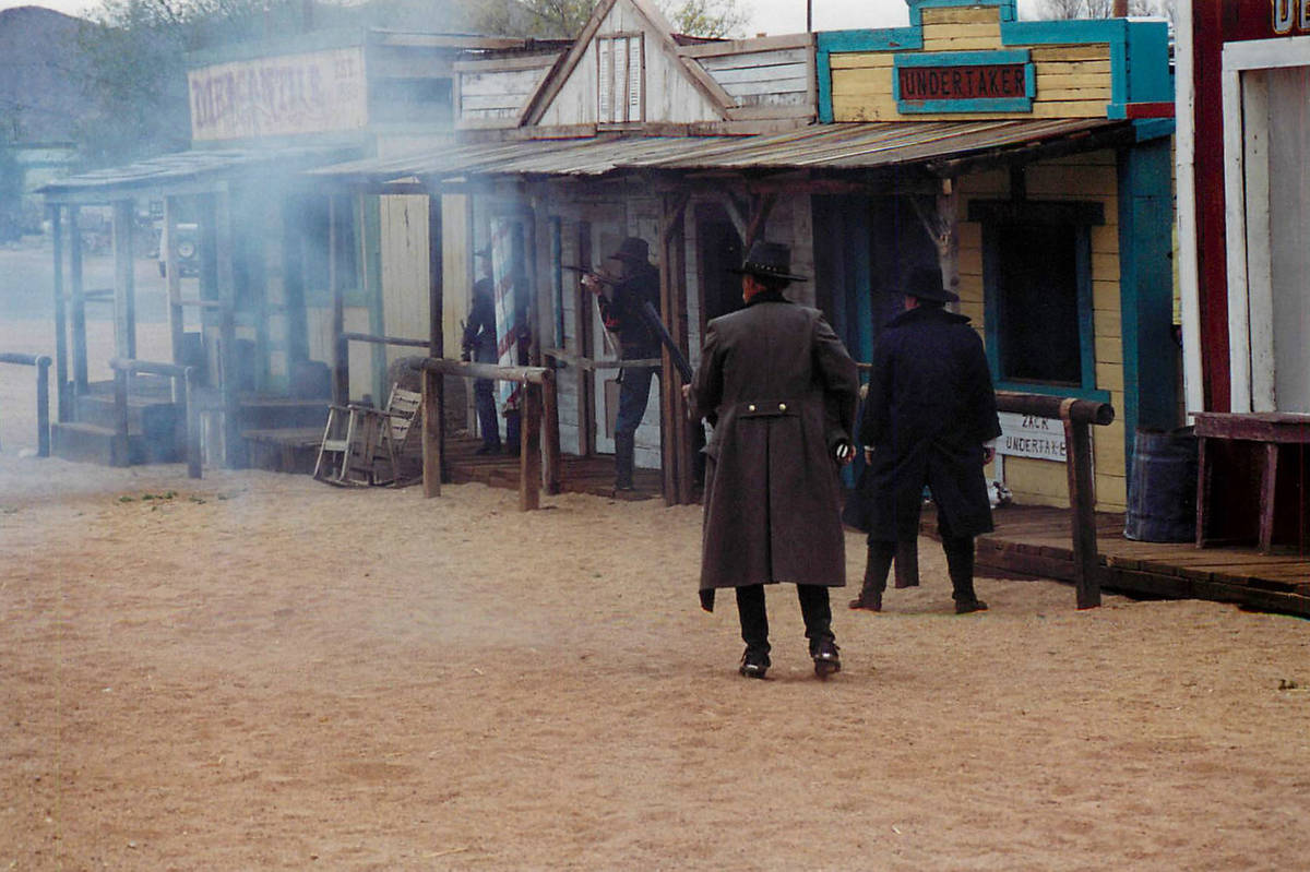 The local gunman went out onto the hard-packed dirt street and starting walking. The stranger did likewise. Step by step, slowly they drew closer. The air was thick with tension. Like a scene from a TV Western or movie, when the two were about 50 feet apart one made a move. So did the other. Boom! Boom! The stranger went down.