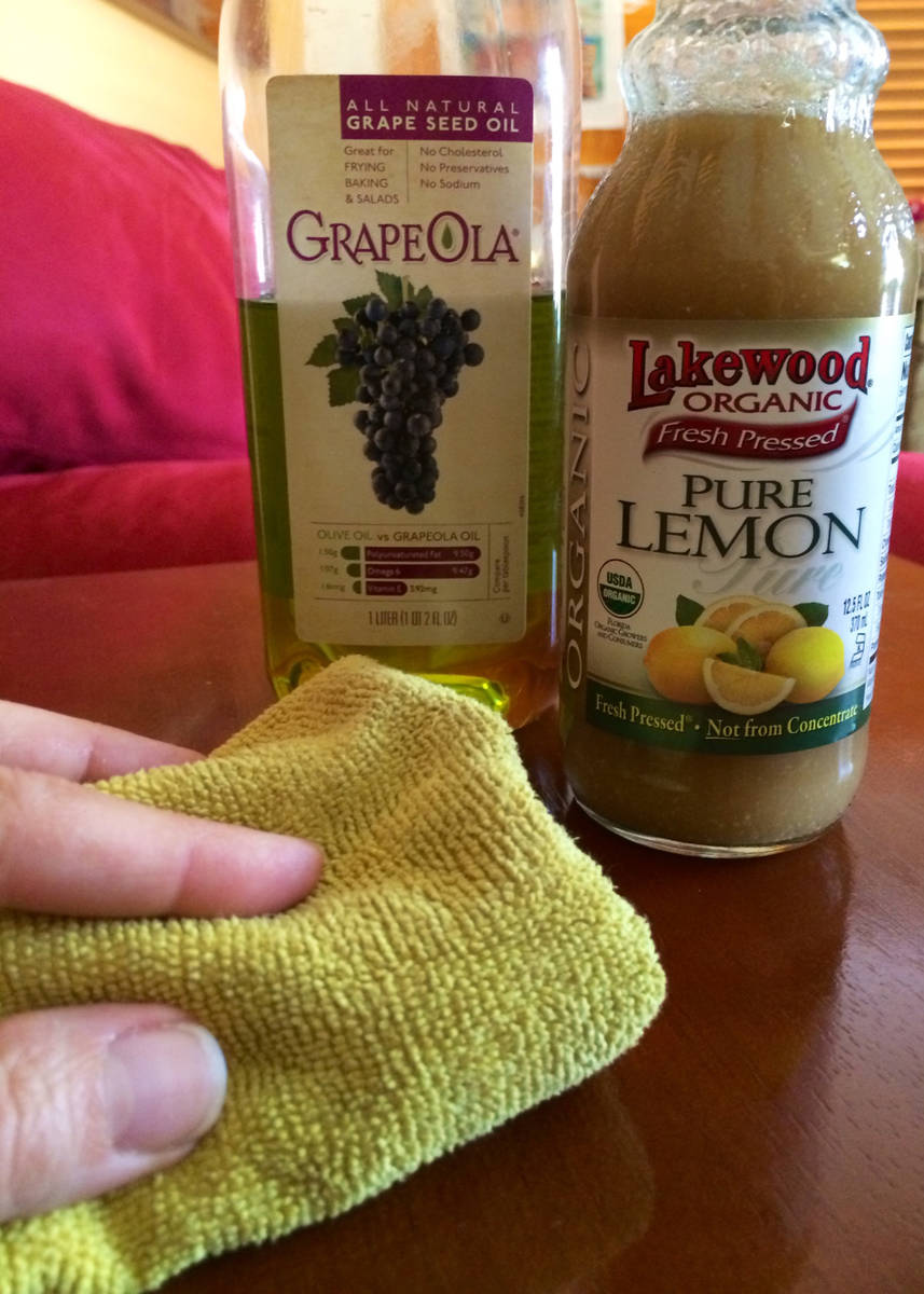 ■ Make lemon furniture polish by mixing two parts vegetable oil to one part lemon juice in a spray bottle (any low-price oil will do). Shake well before spraying.