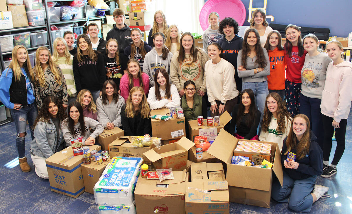 Tuesday, Cheryl Herr’s Boulder City High School student council class delivered gathered food and goods to Emergency Aid here in town. The food drive, which garnered 879 items, was part of an annual class competition, which was won by the senior class.
