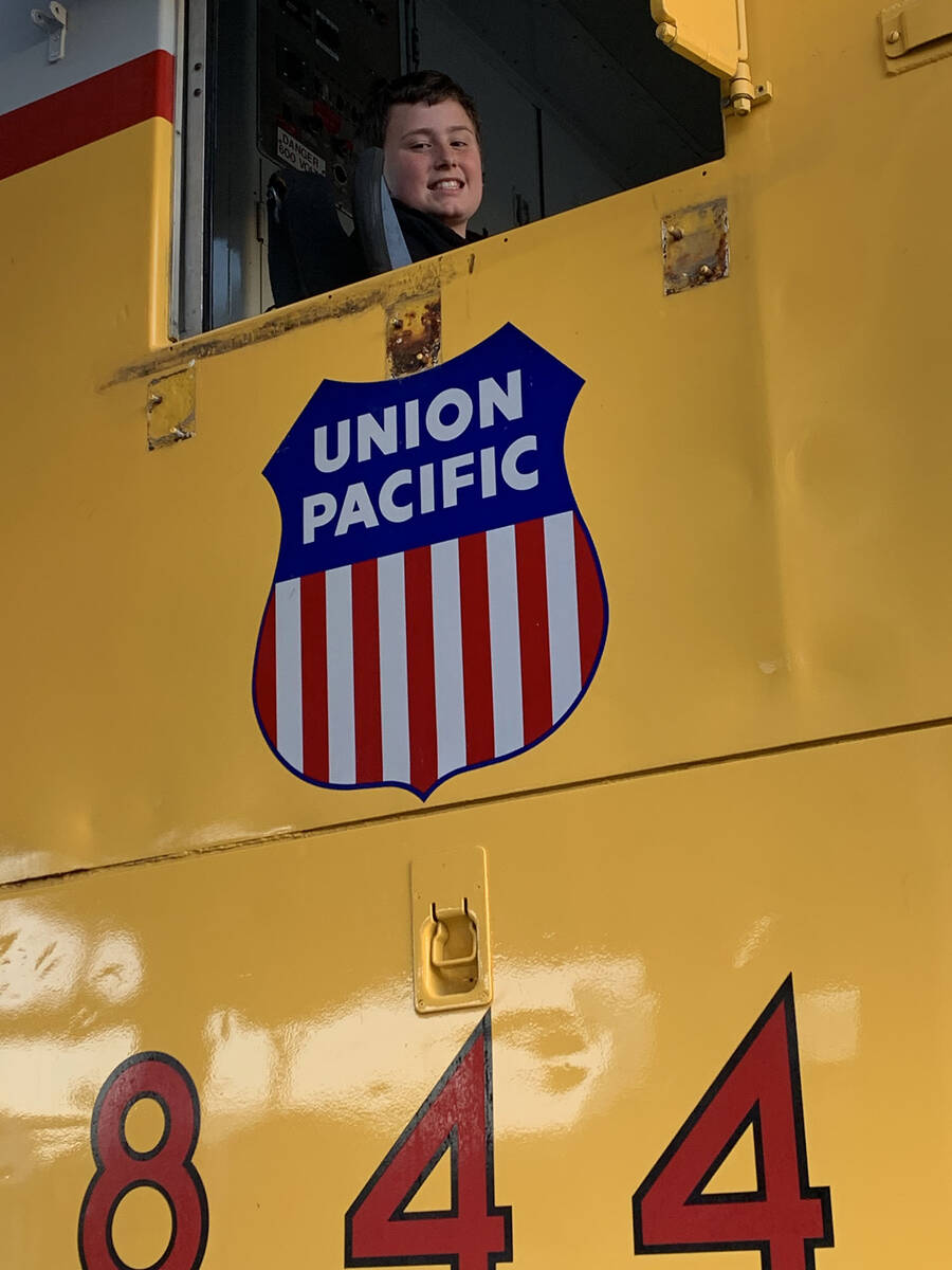 Range Huff, 11, was a guest engineer Friday, Feb. 11, when Friends of the Nevada Southern Railway and Friends of the Boulder City Police Department co-hosted a fundraising train ride to help his family after the unexpected Dec. 25 death of his mother, Briar Huff, a former Boulder City marshal and current officer with Metropolitan Police Department in Las Vegas.