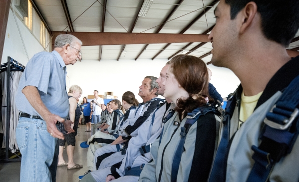 To mark his 85th birthday, Boulder City resident Lincoln White was prepared to jump out of an airplane. He went sky diving on his 75th birthday and had hoped to repeat the adventure, but was unable to keep his knees elevated for five seconds, a requirement of Skydive Las Vegas, which is based at the municipal airport in Boulder City. Instead, he watched as his grandchildren and friends went skydiving.