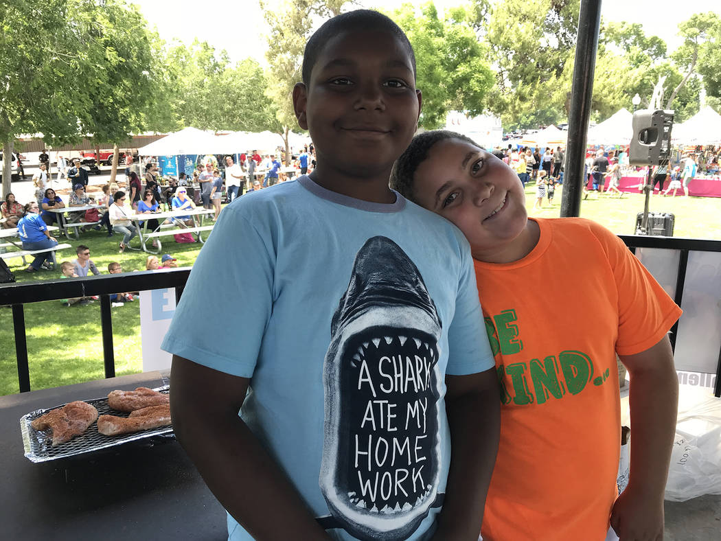 Cousins Tyson Blackmore, 10, left, and Messiah Lookner, 8, competed in the KidsQue event that was held as part of the 14th annual Best Dam Barbecue Challenge on Saturday, May 26, 2018.