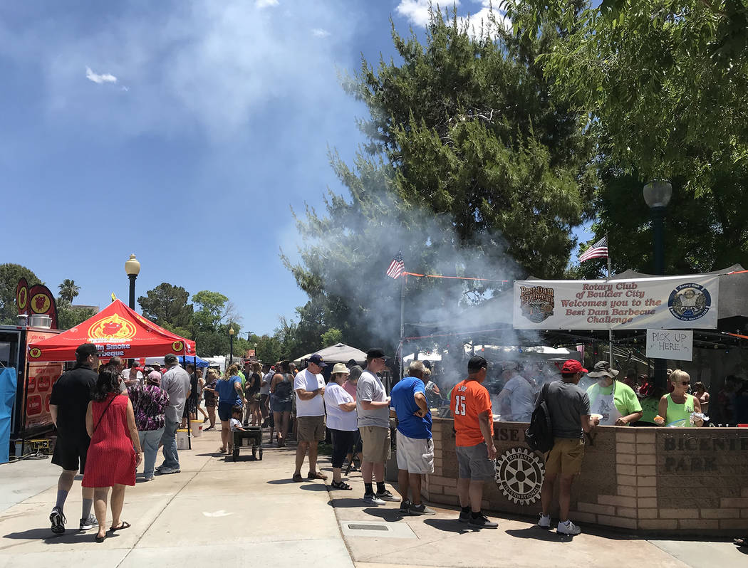 The Rotary Club of Boulder City presented the 14th annual Best Dam Barbecue Challenge in Bicentennial Park on Saturday, May 26, 2018. Members of the club manned the grill to dish up hamburgers and hot dogs to the hungry crowd.