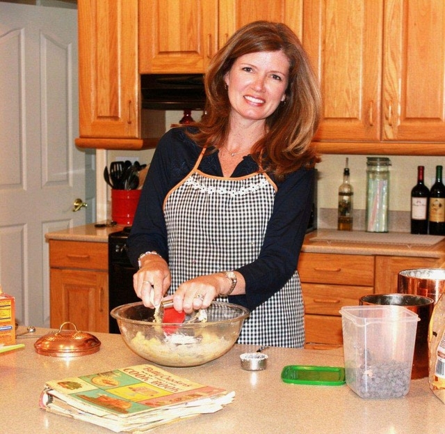 “Mom didn’t use cookbooks very often. She had this Betty Crocker cookbook from the ’60s for her pies and cookies. I started baking with her at a young age, and I loved baking. I liked the preciseness of baking, the exact measurements. I can remember once making chocolate chip cookie bars and the recipe called for ¼ teaspoon of salt. Well, I measured ¼ a cup of salt. My brother and sisters still ate them!” she giggled.