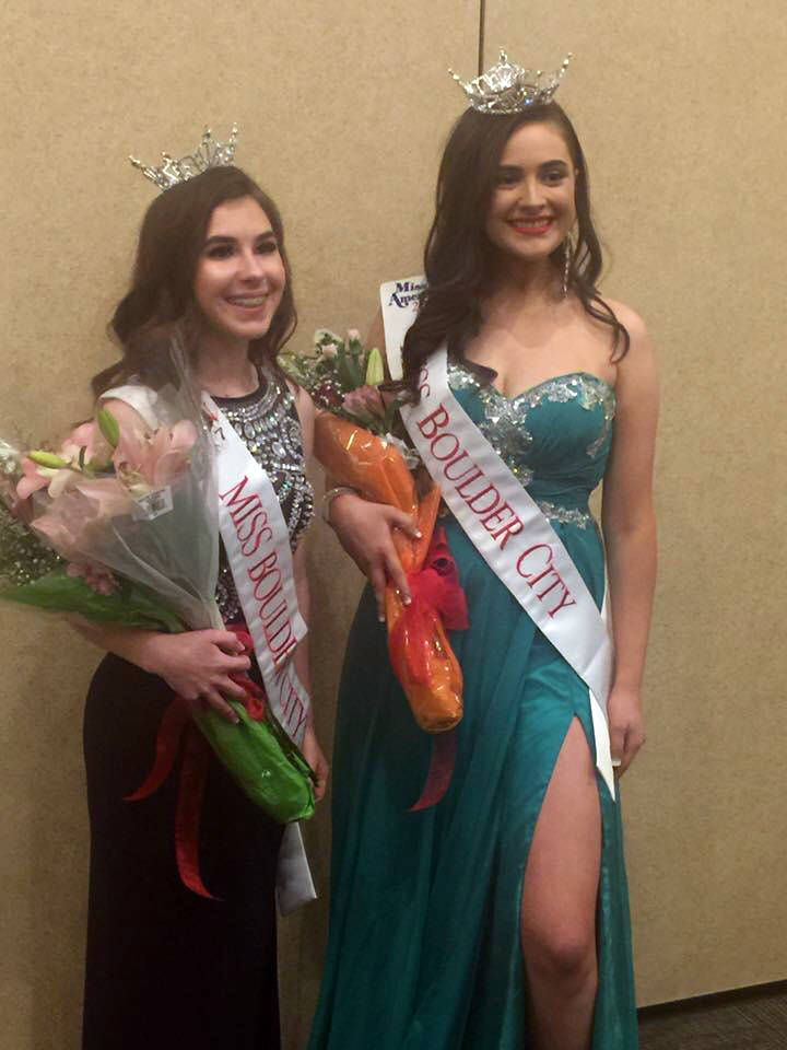 Camryn Lueck and Jordan Rocheleau were crowned Miss Boulder City 2017 and Miss Boulder City’s Outstanding Teen, respectively, during a pageant Feb. 26 at Hoover Dam Lodge presented by the Miss Las Vegas Scholarship Organization.