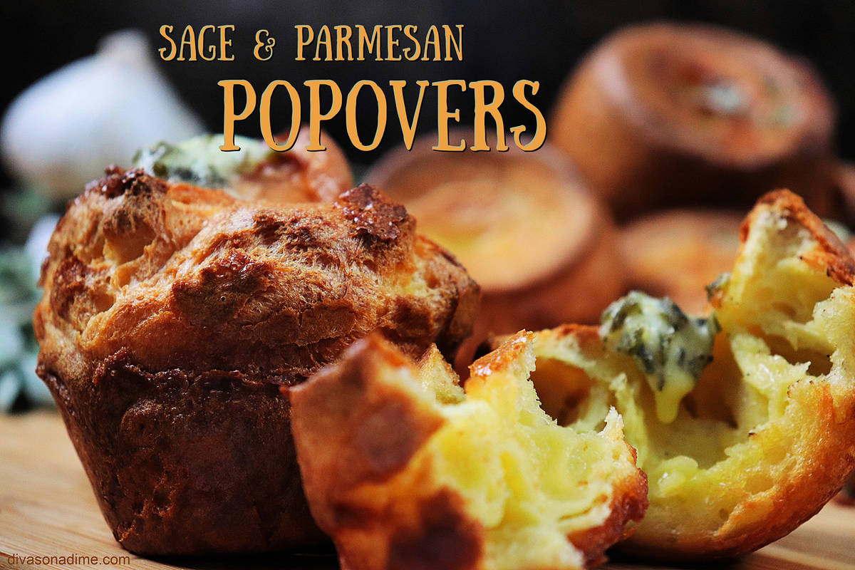 But not just ordinary popovers, (although those are awesome) let’s make fluffy, buttery Parmesan and sage popovers. Popovers are hollow inside, so they’re the perfect vehicle for garlicky sage butter. Let’s make that, too.