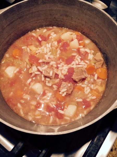 Cook first five ingredients in a covered stock pot, simmering for 1½ hours.