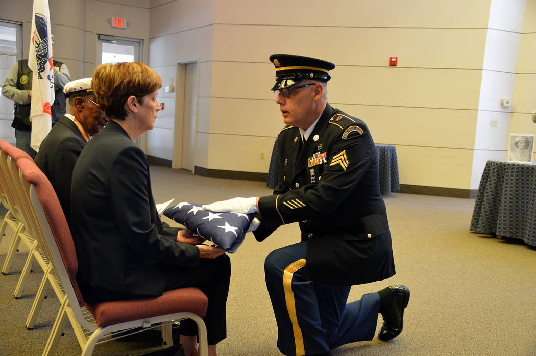 Nevada Veterans Services Director Kat Miller was presented with a flag at the service in honor of Waddy.