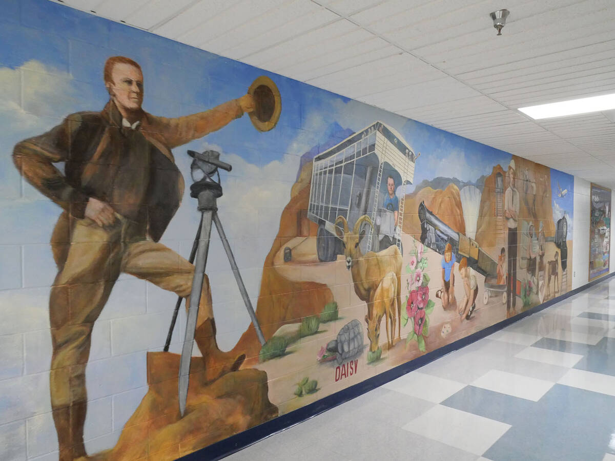 The project took four months to complete with funding provided by the school and Boulder City Community Club. Principal Jason Schrock simply called up Ferraro as he was looking to liven up the walls, which were recently painted white.