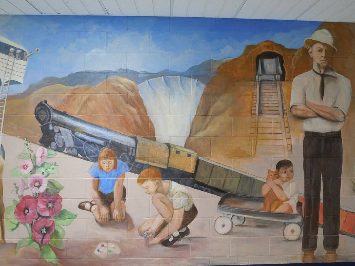 Ferraro and Schrock say that having such a historic painting in an elementary school is key in teaching younger generations about Boulder City’s history. Ferraro stated that Schrock requested that the Hoover Dam and railroads be featured in the painting as they are two of the most notable historical things about Boulder City.