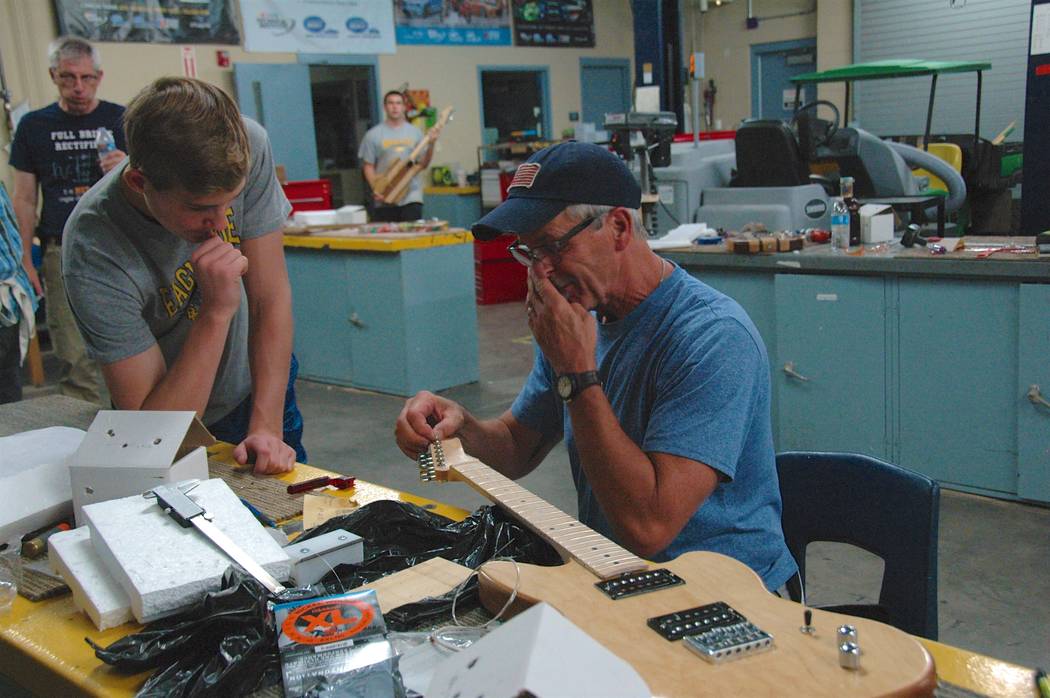 Teacher Joshua Fisher, who introduced the program to BCHS, arranged for teachers to attend the workshop, build their own guitars and experience the class firsthand. Educators from Washington to Pennsylvania, with more than 200 years of teaching experience combined, gathered in the auto shop to learn about making the musical instruments during the weeklong session.