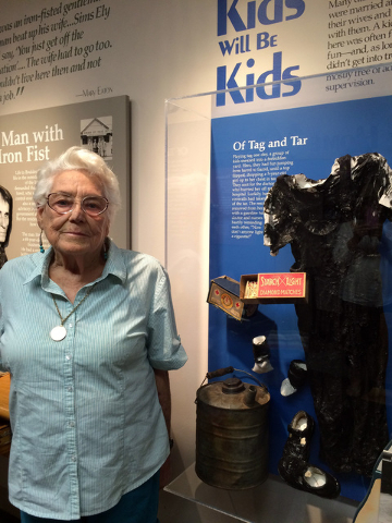 Standing just a bit taller than the tar-covered overalls in the exhibit Boulder City-Hoover Dam Museum, Joy Allen McFate stares at the display and smiles.