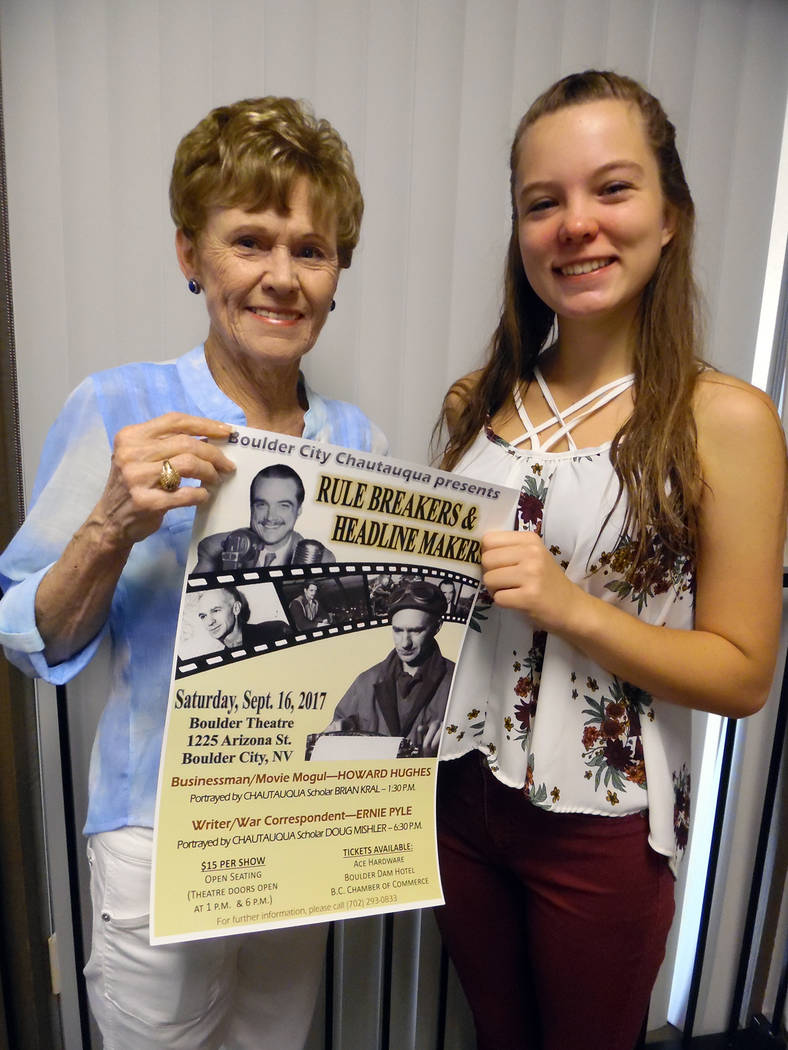 Chautauqua scholar Brian Kral will perform as Howard Hughes and Doug Mishler will portray Ernie Pyle. Both men have performed at previous Boulder City Chautauqua presentations, and Mishler presented both programs last year, appearing as P.T. Barnum and Jack Warner.