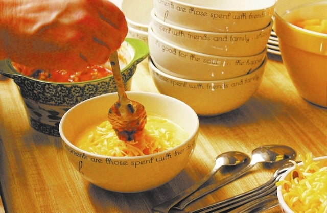 Crumbled corn tortilla chips (I also like to fry up my own flour tortilla strips and salt them right when they come out of the fryer/oil)