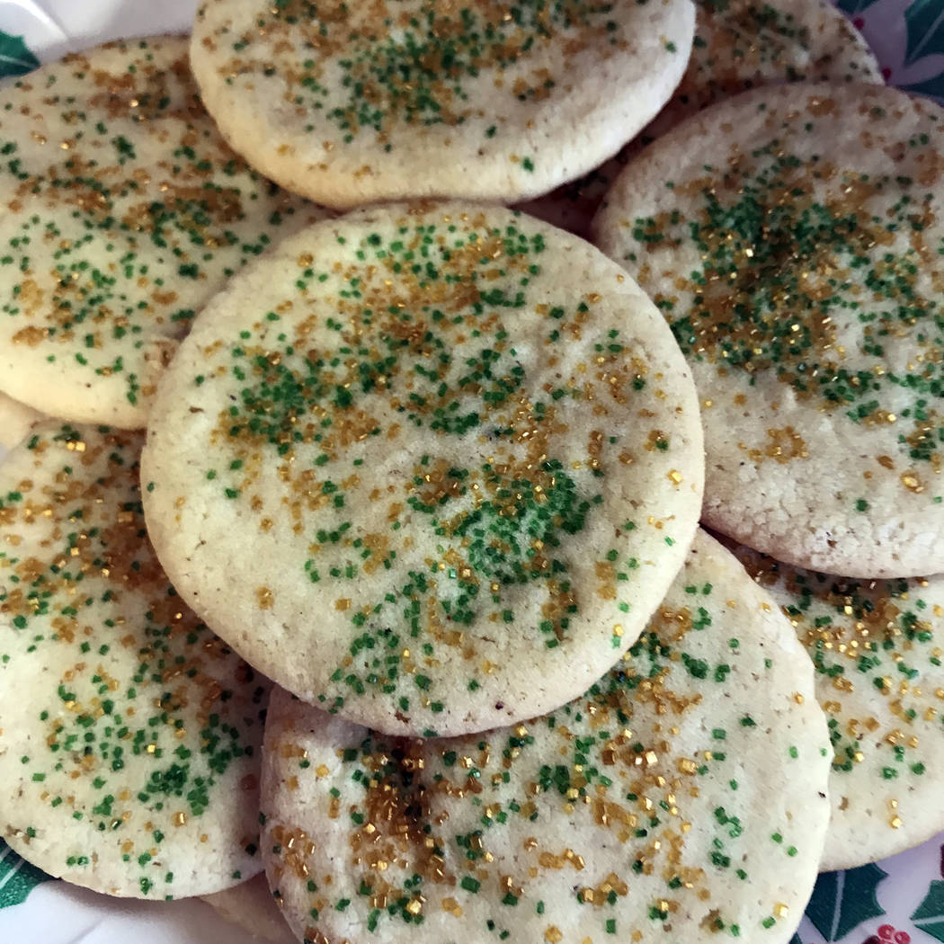For this contest, she topped the cookies with yellow-and-green-colored sugar and included nutmeg in the basic recipe.