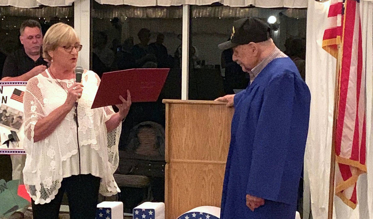 Boulder City’s Charm McElree works with veterans of World War II, Korea and Vietnam who left high school to enter the military. Through her work, she contacts high schools in Nevada and around the country on behalf of veterans who did not graduate. She supplies copies of their DD214s and explains that the student left school to serve the nation and deserves a diploma.