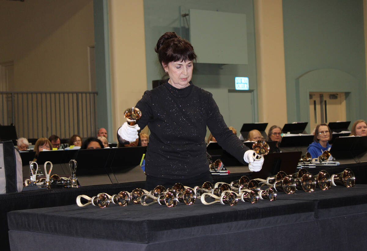 About 100 people filled the Boulder City Parks and Recreation Gym for the 28th Las Vegas Twelfth Night Handbell Festival Concert under the direction of conductor Jason Krug. The hour-long concert featured many holiday favorites as well as original pieces. More than 60 handbell performers from Nevada, California and Arizona came together for the concert, which was hosted by Harmony Handbells and Boulder City United Methodist Church.