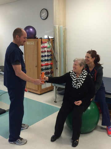 When the therapists are able to take a moment and talk, their caseloads being sometimes 10 or more in a day, they talk about their charges’ successes as if they were their own personal achievements. Lyons asked Somerholder, “Do you remember the 88-year-old person who came in using a cane or sometimes a walker and now is not using anything?”