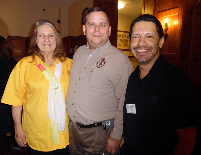 Among those celebration Rotary Club of Boulder City’s 79th birthday on Feb. 23 were past, current and future presidents, from left, Christy Springgate-Hill, John Chase and Larry Archuleta. The club was chartered in 1937 and is one of the oldest in the Southwest.
