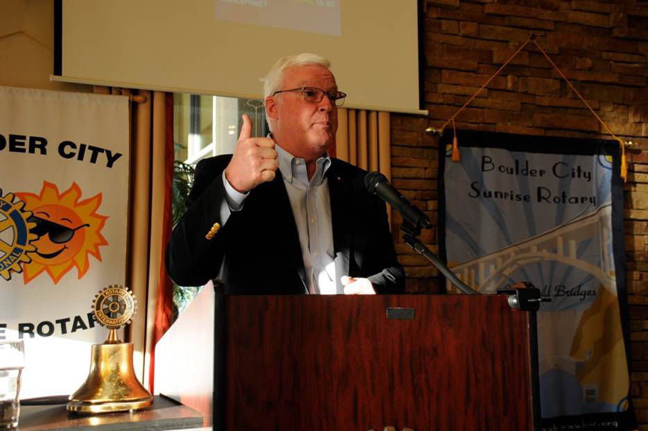 John Matthews, incoming vice president and director for Rotary International, was the guest speaker at a recent Boulder City Sunrise Rotary Club meeting. He spoke about the importance of members staying true to their core values of integrity and service and also updated listeners on Rotary’s efforts to fight polio.