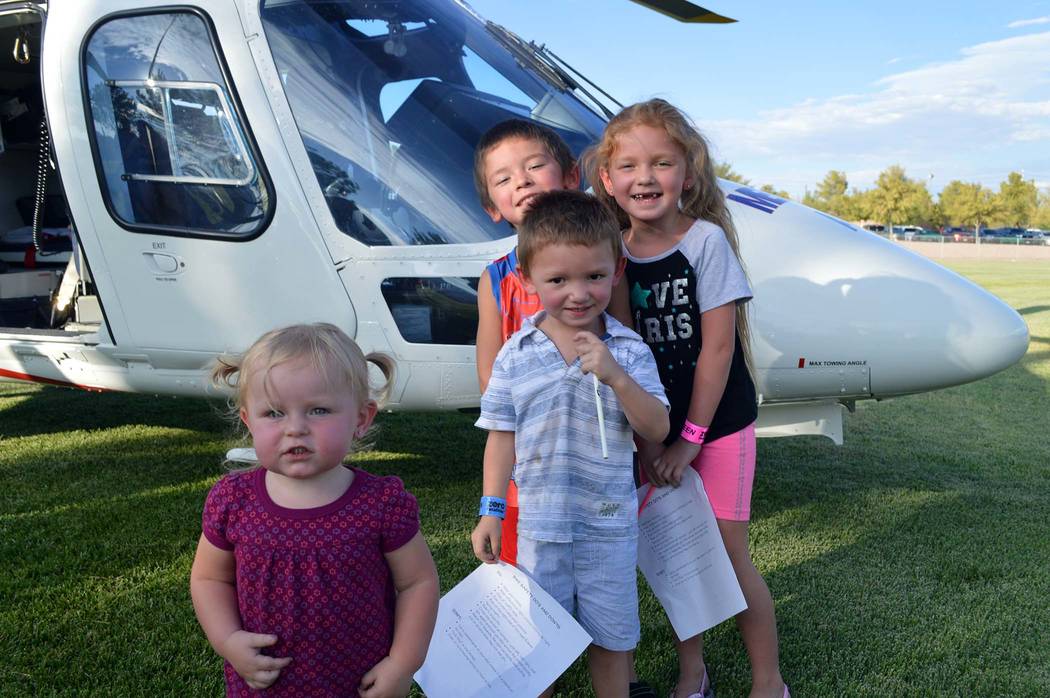 The Gardner siblings, from left, Alenna, Jacob, Johnny, and Kylie, enjoy hanging around the Mercy Air helicopter at National Night Out.