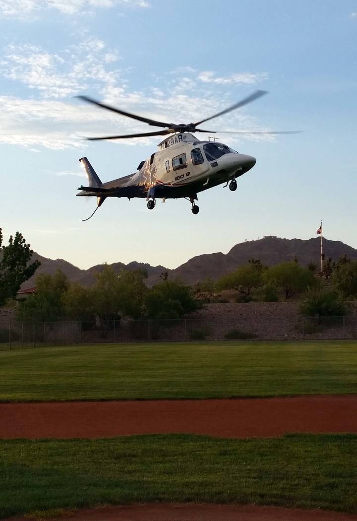 The Mercy Air helicopter takes off from a field at Veterans’ Memorial Park during National Night Out.