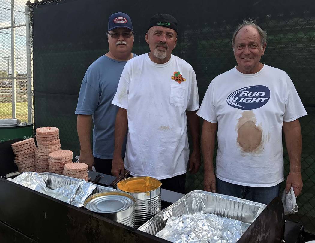 Manning the grill and cooking hamburgers for National Night Out on Tuesday, Aug. 1, 2017, were, from left, Zane Boyster, Scott Dombrowski and Jack Gaal. They have been volunteer cooks for the event for the past 10 years.