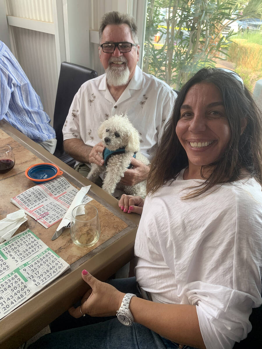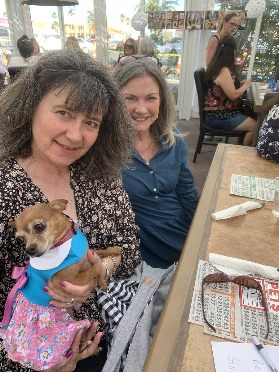 All set for an evening of dinner and bingo to help raise funds for See Spot Run were Jame Moore and Sonia Mongili, who brought her dog, Benjamin, to the festivities Thursday, June 2, 2022, at The Patio at Chilly Jilly’z.